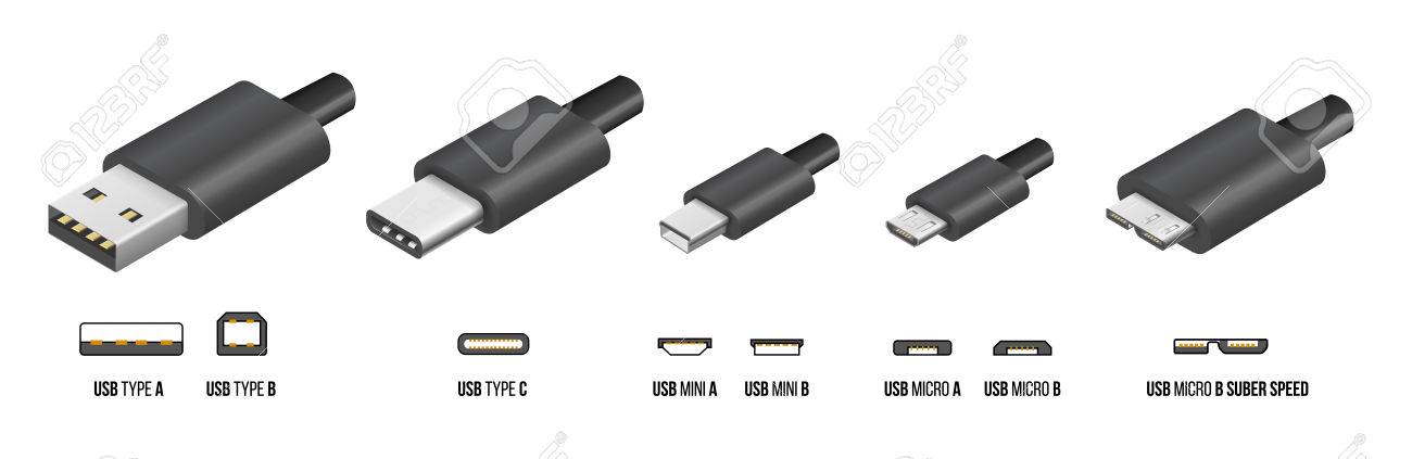 La Plupart Des Types Standart Usb A B Et De Type C Bouchons Mini Micro Connecteurs Universels De Cable D Ordinateur Illustration Vectorielle Banque D Images Et Photos Libres De Droits Image 72225450