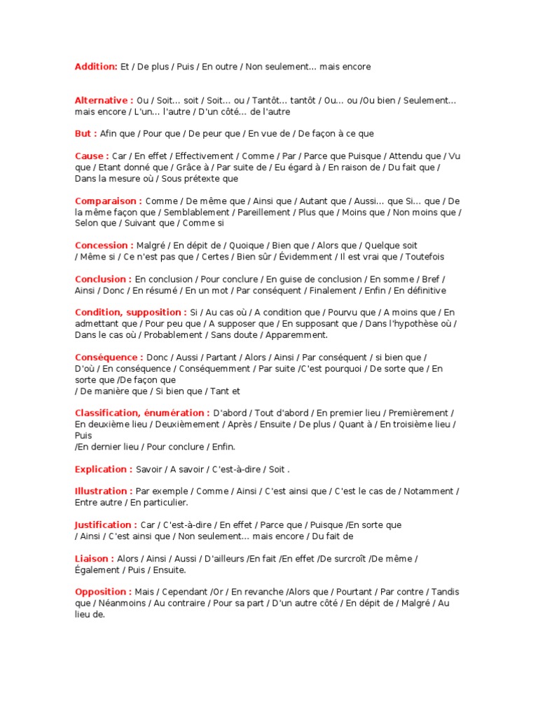Relations Logiques Connecteurs Articulateurs Du Discours Fle