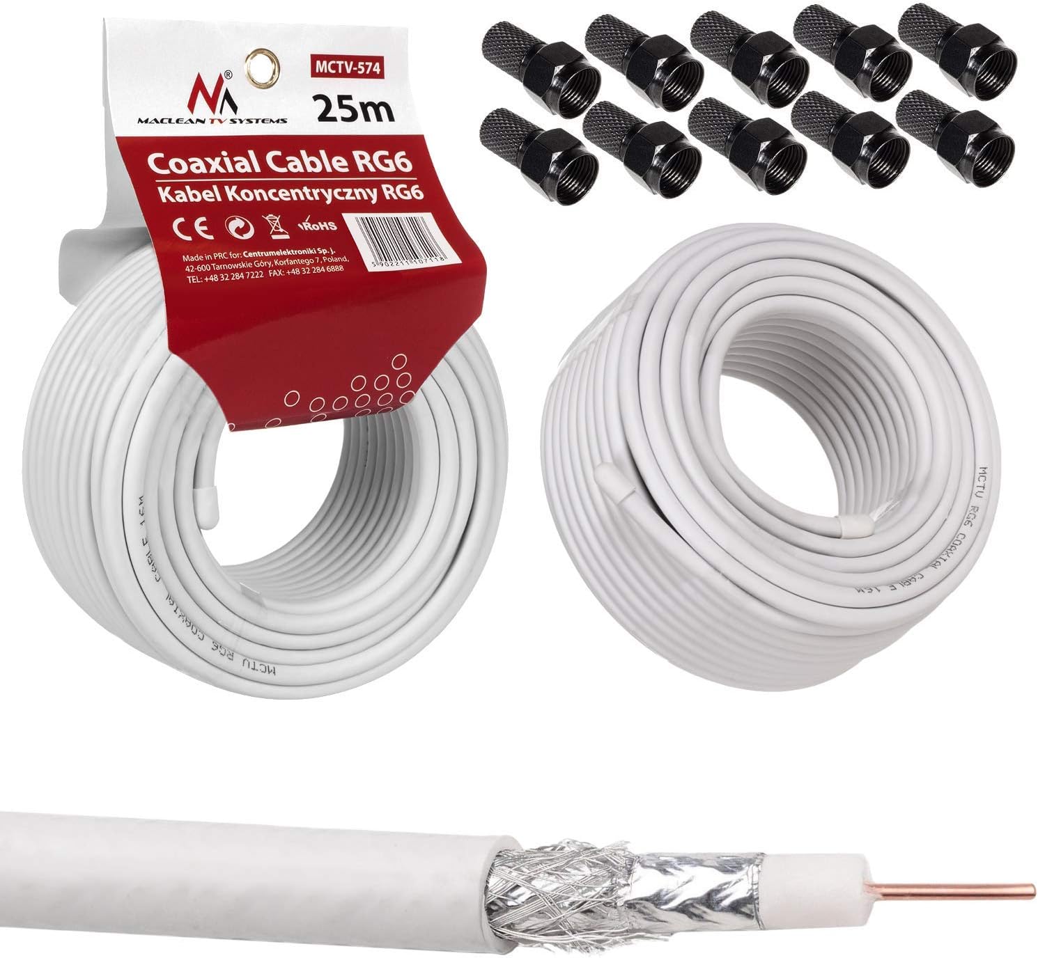 100m 10x F Connecteur Maclean Mctv 572 Cable Satellite Cable Dantenne Satellite Cable Coaxial Rg6 1 0css Cable Dantenne Sat Av