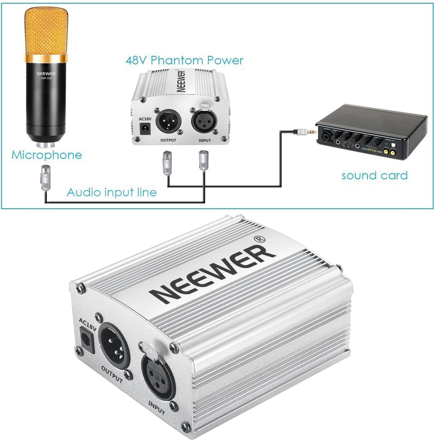 Canal 48v Alimentation Fantome Argente Avec Adaptateur Et Un Xlr Cable Audio Neewer 1 Studiovitorcampos Com Br