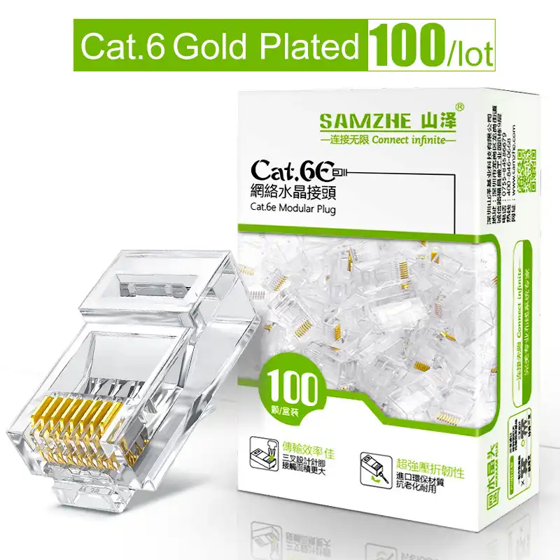 Samzhe Cat6 Rj45 Fiche Modulaire 8p8c Connecteur Pour Cable Ethernet Plaque Or 1gbps Chat 6 Gigabits En Vrac Ethernet Connecteurs A Sertir Aliexpress