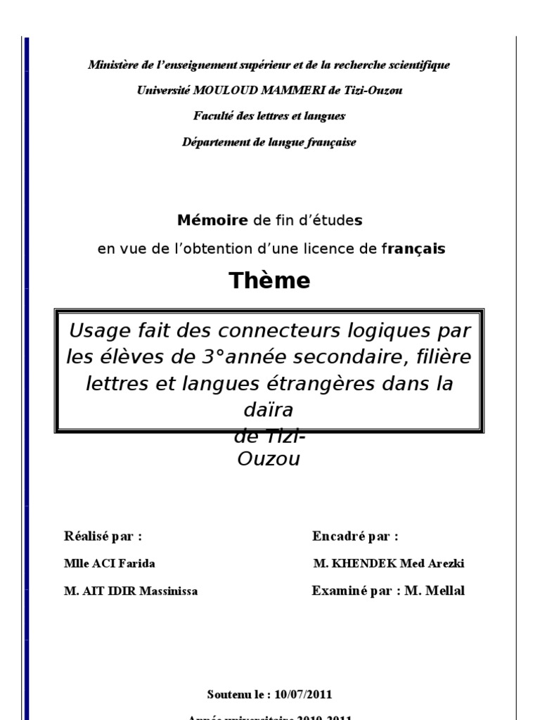 Les Connecteurs Logiques Docx Adposition Mecanique Du Langage