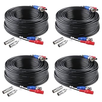 Annke 4 X 30 M 100ft Cable Video Surveillance Camera D Alimentation Coaxial Tvi 4 En 1 Multifonctions Double Connecteur Bnc Bnc Femelle A Av Masculine Bnc Rca Dc Pour Kit De Surveillance Noir