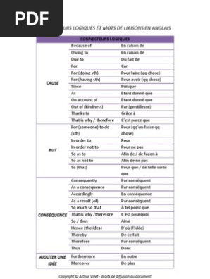 Connecteurs Logiques Et Mots De Liaison Anglais