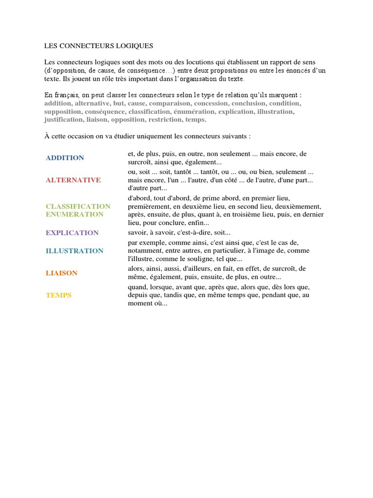 Les Connecteurs Logiques Docx Adposition Mecanique Du Langage